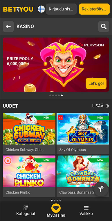 Kyllä – napauta ”Mobiiliversio”-banneria aloitusnäytöllä saadaksesi erityisiä ilmaiskierroksia ja käteispalautustarjouksia, joita et löydä työpöytäversiosta.