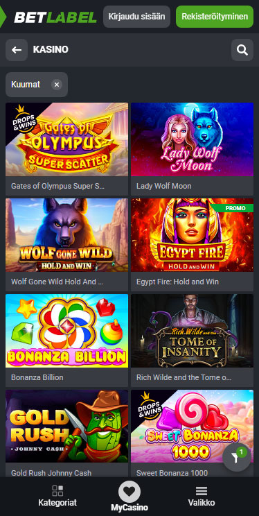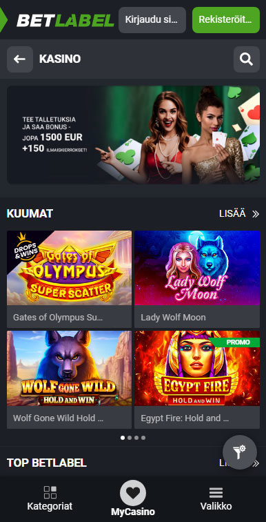 BetLabelin mobiilikasino ei ole mikään pelkistetty jälkikäteen tehty laite – se on sama tehopakkaus kuin pöytäkoneella, taskuusi mahtuvana. Käyttöliittymässä raskaat valikot on vaihdettu siistiin ja peukaloystävälliseen ulkoasuun: pyyhkäise vaakasuunnassa selataksesi kolikkopelejä, napauta kirkasta ”Live”-välilehteä hypätäksesi Evolution- tai TVBet-pöytiin tai avaa vetohistoriasi hetkessä. Animaatiot latautuvat katkeamatta, ja jopa 3G-yhteydellä ”Data Saver” -kytkin pienentää grafiikkaa, mikä vähentää datan käyttöä ja varmistaa sujuvan pelaamisen. Etsitpä sitten voittoja Gems Odysseyssa tai tähtäät Alle & Yli 7 -vedonlyöntiin, BetLabel pitää toiminnan sujuvana ja kertoimet sormesi ulottuvilla.
