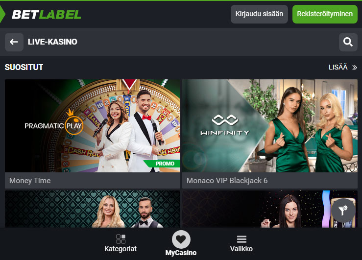 BetLabelin mobiilikasino ei ole mikään pelkistetty jälkikäteen tehty laite – se on sama tehopakkaus kuin pöytäkoneella, taskuusi mahtuvana. Käyttöliittymässä raskaat valikot on vaihdettu siistiin ja peukaloystävälliseen ulkoasuun: pyyhkäise vaakasuunnassa selataksesi kolikkopelejä, napauta kirkasta ”Live”-välilehteä hypätäksesi Evolution- tai TVBet-pöytiin tai avaa vetohistoriasi hetkessä. Animaatiot latautuvat katkeamatta, ja jopa 3G-yhteydellä ”Data Saver” -kytkin pienentää grafiikkaa, mikä vähentää datan käyttöä ja varmistaa sujuvan pelaamisen. Etsitpä sitten voittoja Gems Odysseyssa tai tähtäät Alle & Yli 7 -vedonlyöntiin, BetLabel pitää toiminnan sujuvana ja kertoimet sormesi ulottuvilla.