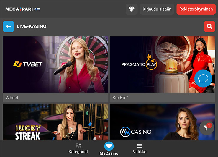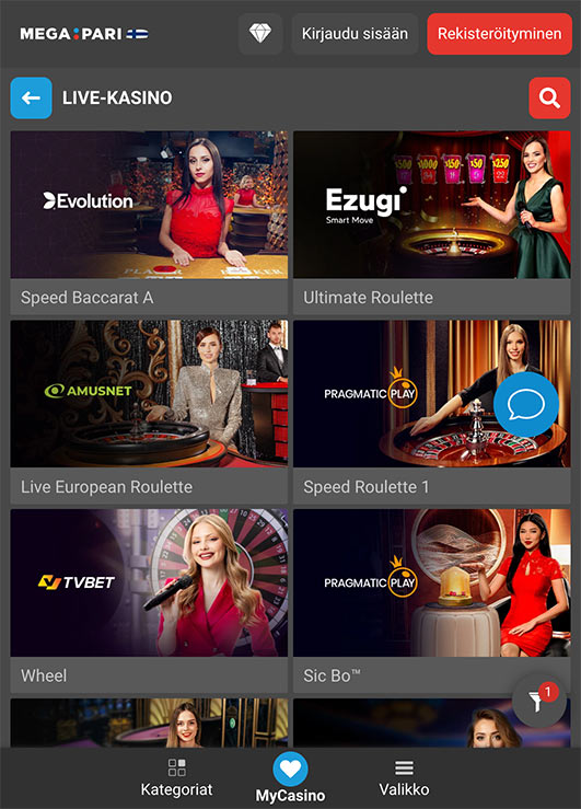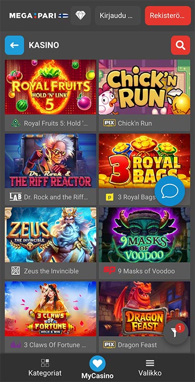 Megapari tuo huippuluokan kasinopelikokemuksen suoraan mobiililaitteellesi varmistaen, että voit nauttia kaikesta toiminnasta missä tahansa liikutkin. Mobiilisovellus on suunniteltu tarjoamaan saumattoman pääsyn laajaan pelivalikoimaansa (yli 10 000), mukaan lukien kolikkopelit, kaikki klassiset kasinopelit ja niiden live-versiot. Lisäksi saat käyttöösi täysimittaisen vedonlyöntisivuston, jota voit käyttää missä tahansa. Korkea yhteensopivuus ja käyttäjäystävällinen käyttöliittymä takaavat sujuvan ja modernin pelikokemuksen kaikille käyttäjille.