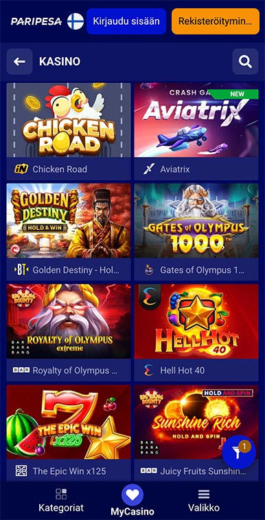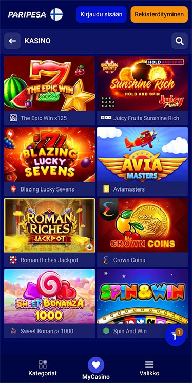 Sovellus tarjoaa laajan valikoiman pelejä, kuten kolikkopelejä, jackpot-pelejä, live-kasinopelejä, blackjackia, baccaratia, rulettia, videopokeria, bingoa ja kenoa.