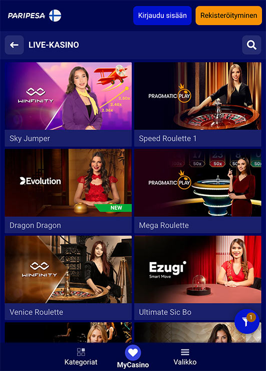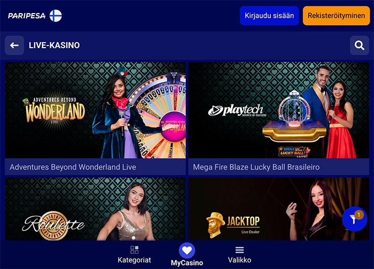 Kyllä, PariPesan pelaajille on tarjolla yli 300 live-jakajapeliä.